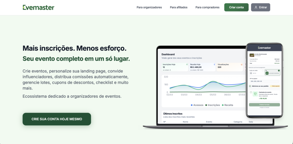 Utilizar uma plataforma especializada como a Evemaster permite que você: